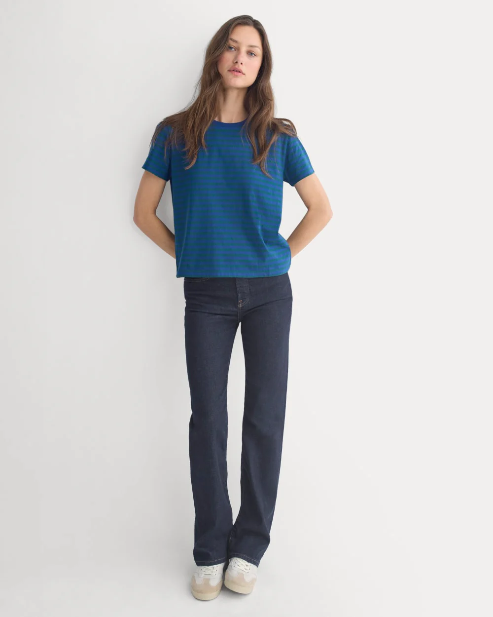The Box-Cut Tee in Essential Cotton | Navy Peony/Dark Sea | No Pocket