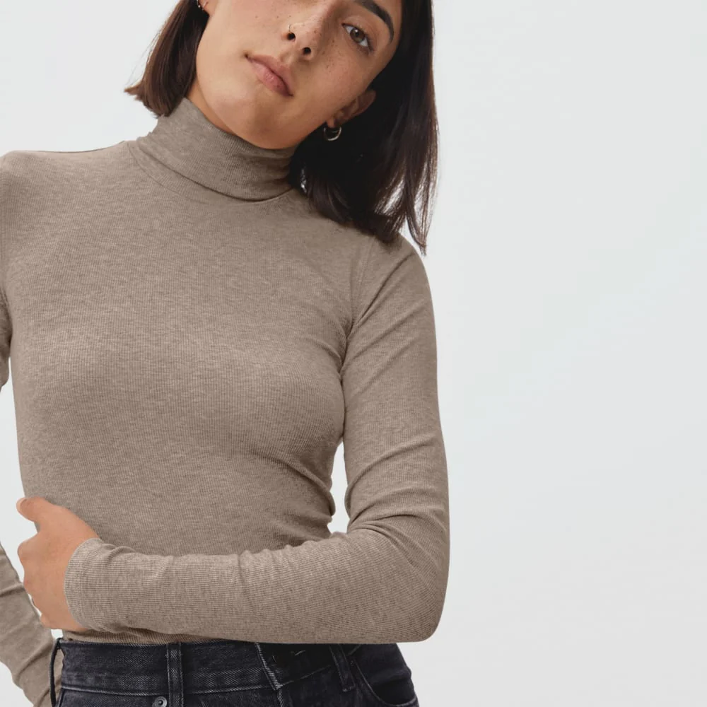 The Pima Micro-Rib Turtleneck is made of super-soft fine-ribbed cotton with a touch of stretch that hugs in all the right places. Plus, it features a classic fold-over turtleneck, long fitted sleeves, and a snug fit throughout, which makes it just as comfortable as it is cute. Wear it on its own or under a sweater for extra warmth—either way, bras are optional.