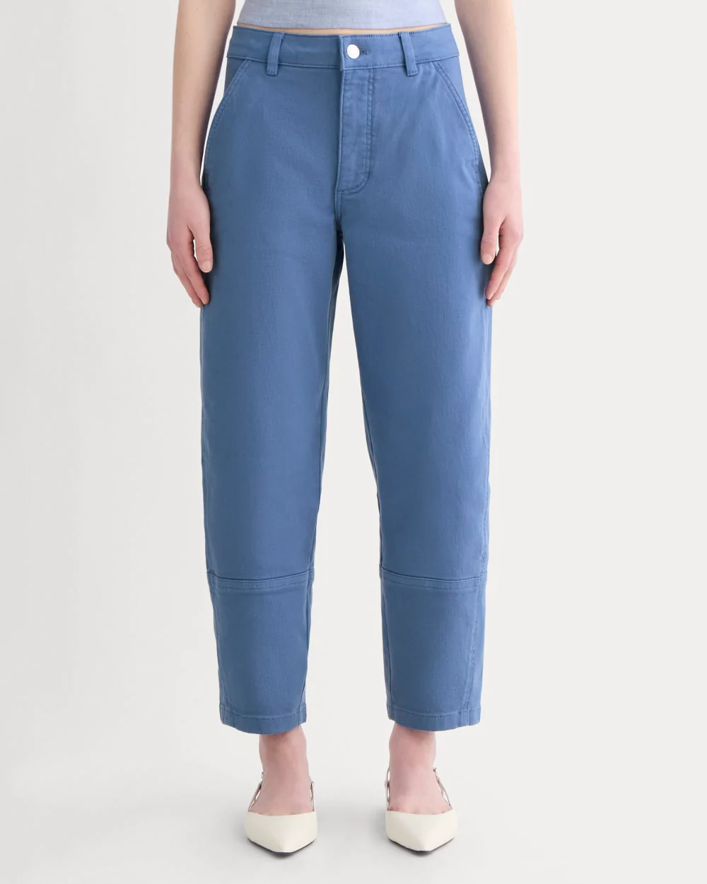 To quote you—our customers, there’s really no competition, the Utility Barrel Pant really is that good. Made of medium-weight cotton twill with just a touch of stretch, it features a high rise to hold you in, and that main-character-energy curved leg in an easy cropped length. Cool utilitarian paneling and butt-boosting patch pockets give you legs for days without all the hours of Pilates. Consider these your ultimate antidote to living in jeans.